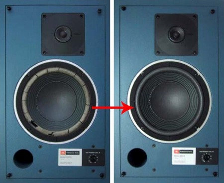 エッジ交換のご依頼と同時に、エッジのラバーコーティング加工(ダンプ剤塗布)/センターキャップ交換/コーン紙着色/コーン紙の亀裂等の修復等も承ります。 |